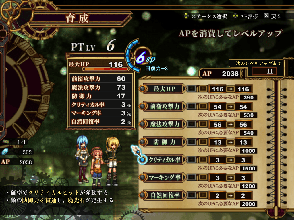 育成はお金代わりとなるAPを消費してステ振りするタイプ。